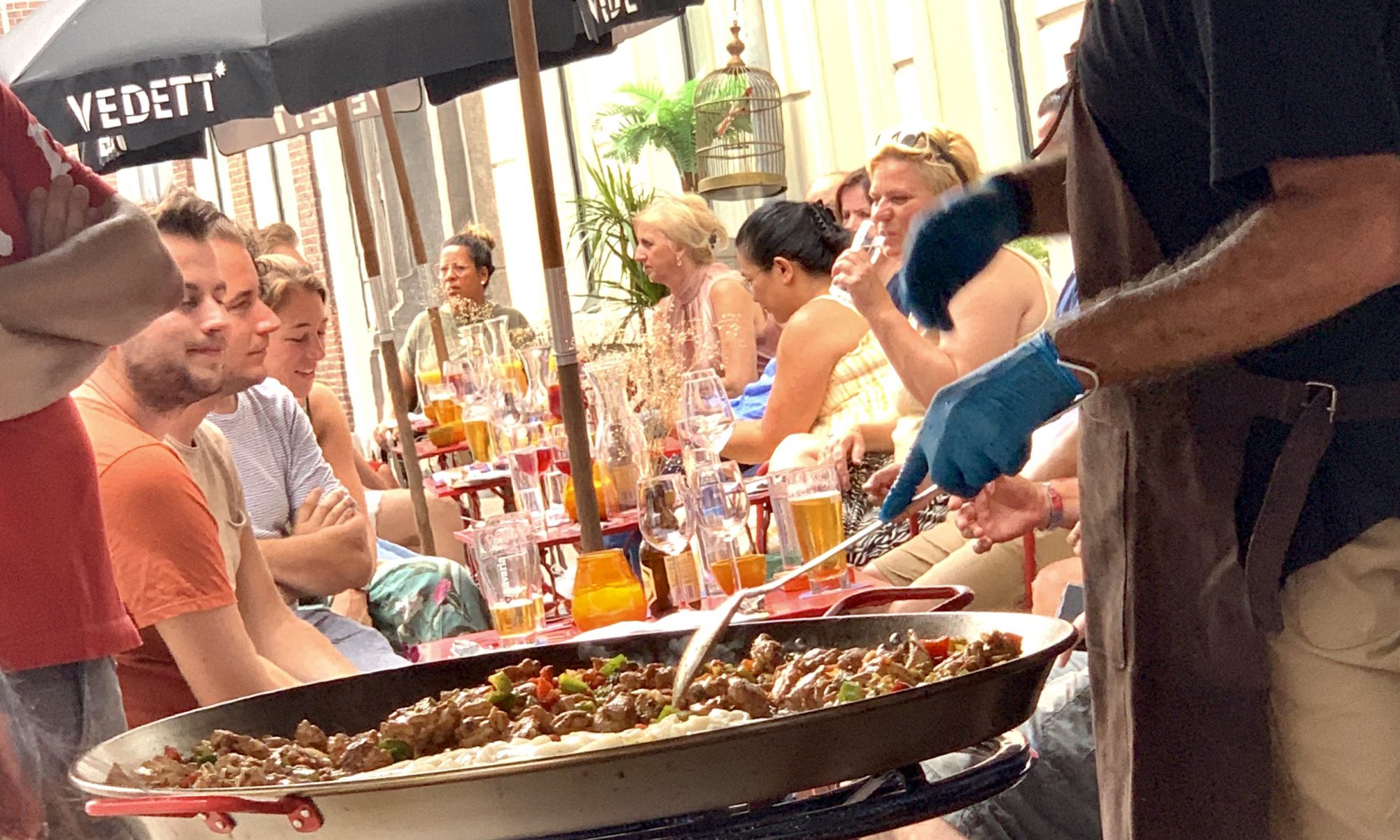 De zon zakte over de stad en het dak van de parkeergarage geeft machtig uitzicht op onze stad. Maar dan gaat het halverwege de avond toch zachtjes regenen. Het personeel deelt paraplu’s uit en voorziet de tafeltjes van parasols. Heb jij ooit een comedy samen vanonder een paraplu bewonderd? Het was weer een van de allerleukste avonden in Den Bosch.