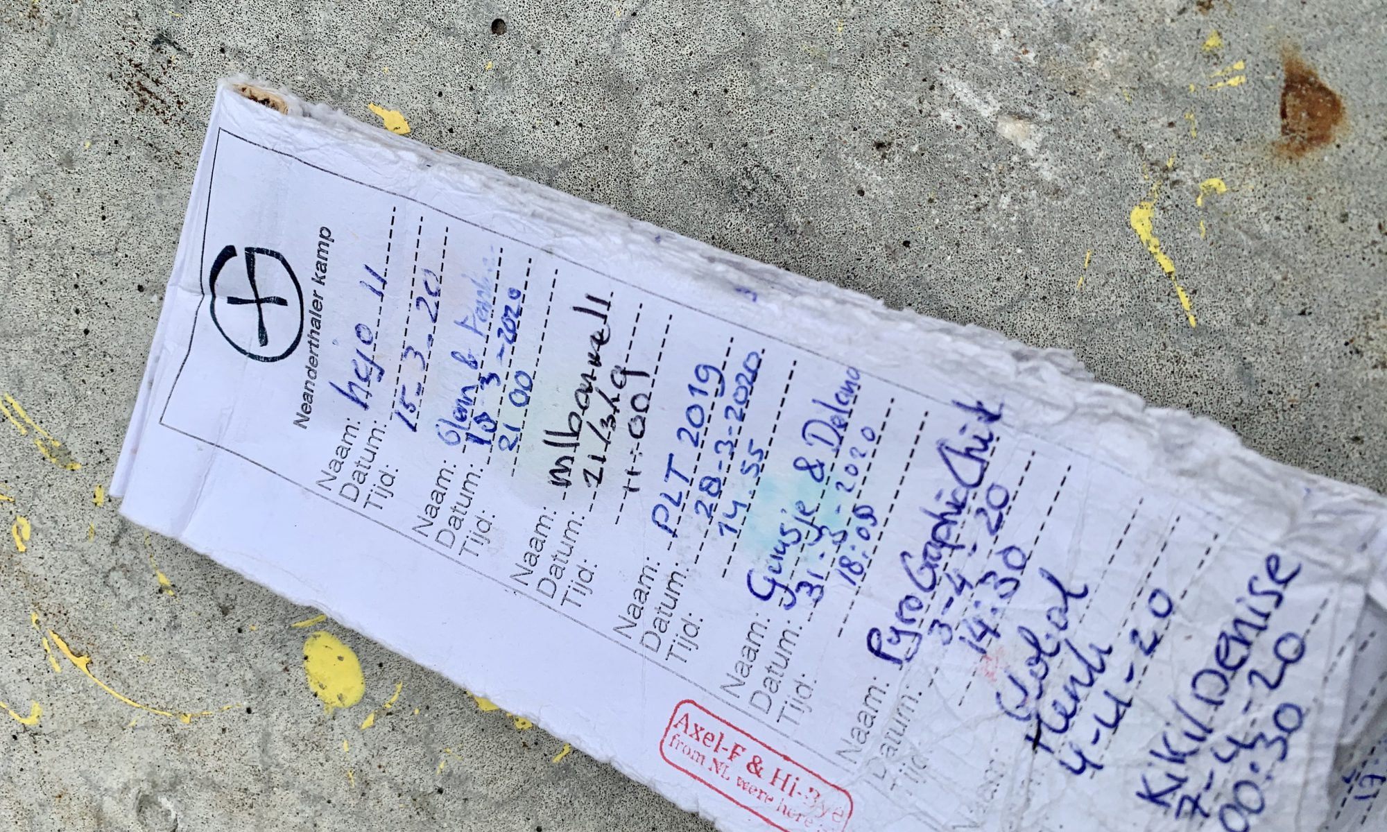 Speciaal voor Hédenbosch gaan we op zoek naar een geocache. De cache ‘GC6YJFY – Neanderthalerkamp’, ligt in de buurt van de parkeerkelder aan de Bossche Hekellaan en zijn beschrijving begint met “Tijdens de bouw van deze ondergrondse parkeergarage in 2013, werden restanten aangetroffen van een neanderthalerkampement. Het gaat om het best bewaarde neanderthalerkampement van Nederland. …” Deze cache is in 2016 geplaatst en inmiddels meer dan 1200 maal gevonden en ‘gelogd’ (zie foto inzet) door enthousiaste (be)zoekers en toeristen in onze stad. We schrijven onze naam op de logrol en noteren onze vondst in de app. Superleuk en leerzaam dus! Dus… wanneer maak jij een account en ga jij geocachen?