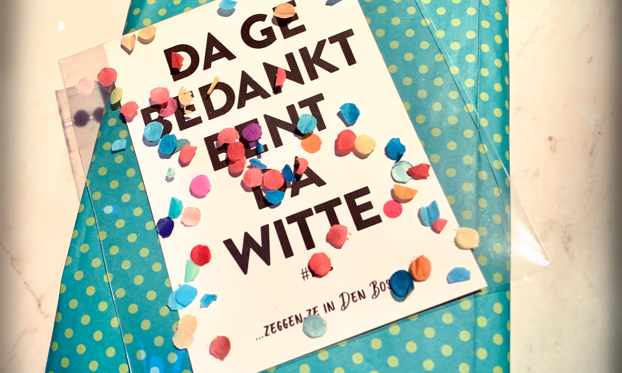 En wat zal ze dat waarderen! In onze webwinkel vind je ook nog leuke bedankkaarten. Bestel deze week zonder verzendkosten met kortingscode LIEVEJUF. Da ge bedankt bent da witte!